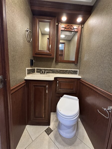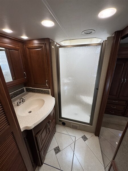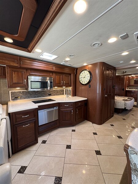 • Living Area: High-gloss porcelain tile, polished solid surface countertops, and Sony LED HD TVs.