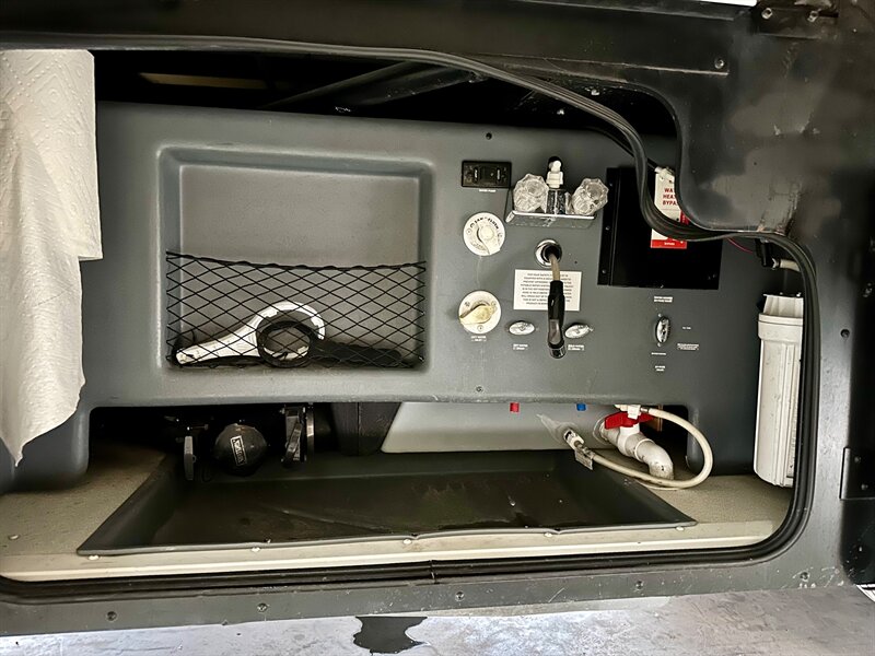 100-gallon fuel tank, 100-gallon fresh water, 75-gallon gray, 50-gallon black